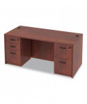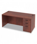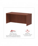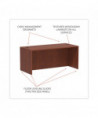 Durable, commercial grade laminate work surface and side panels are water, scratch, and stain resistant. The charcoal accent line under the work surface adds style and a distinctive touch. A protective edge banding helps to prevent damage from bumps. Two grommets for cable and wire management. Full-length modesty panel for added privacy.
