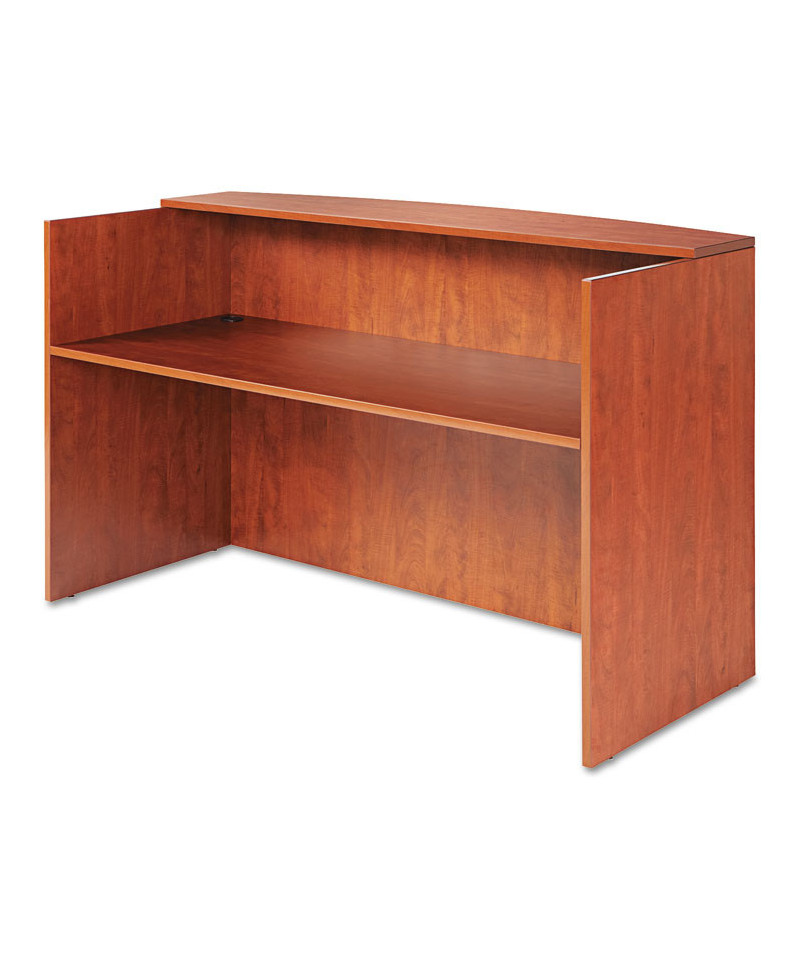 Alera Valencia Series Reception Desk with Transaction Counter, 71" x 35.5" x 29.5" to 42.5", Medium Cherry