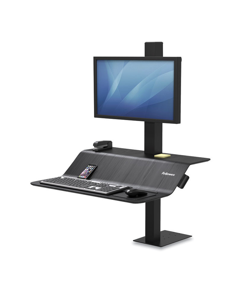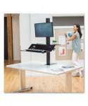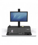 The Lotus™ VE Sit-Stand Workstation was engineered to effortlessly transition from sitting to standing. Dual work surfaces offer useful space and stability to support all of your essentials. Convenient channel keeps all of your devices at your fingertips. Integrated cord management keeps your desk free of tangled cords. Features 18" of vertical adjustment so you can work in a position that's perfect for you. The single clamp design with limited installation can be mounted to the back edge of any work surface. Accommodates monitors up to 20 lb with 25 lb of total weight capacity.