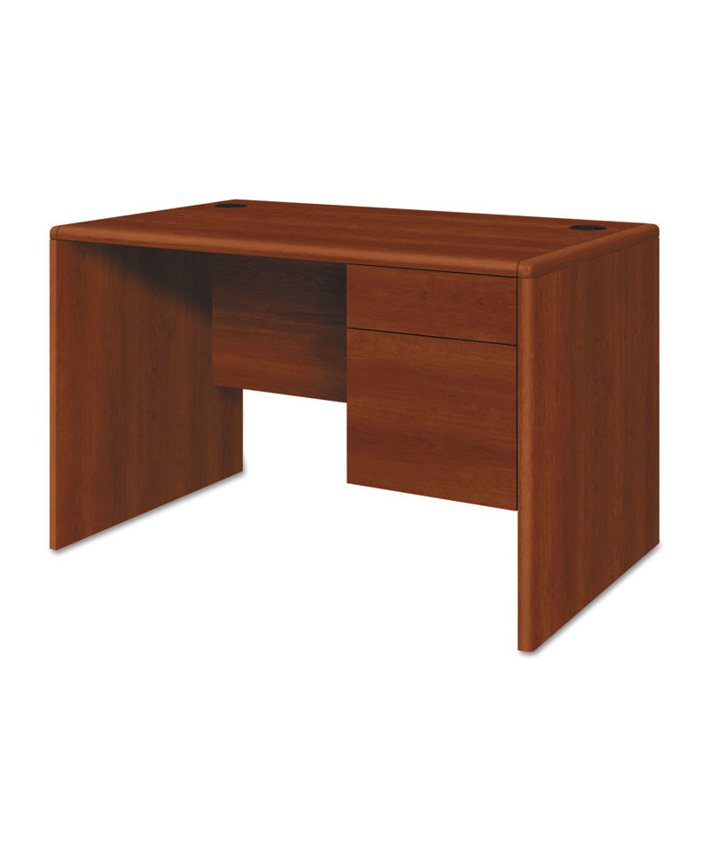 A modular management solution that combines stylish profiles and elegant accents with top-grade fit and finish. Abrasion- and stain-resistant high-pressure laminate with elegant hardwood trim. Drawers ride on steel ball bearing suspensions; file drawer extends fully and accommodates letter and legal size hanging files, box drawer extends three-quarters. HON® “One Key" core removable locks make re-keying quick and easy. Full-height modesty panel for privacy. Two worksurface grommets for cable management.