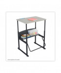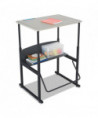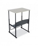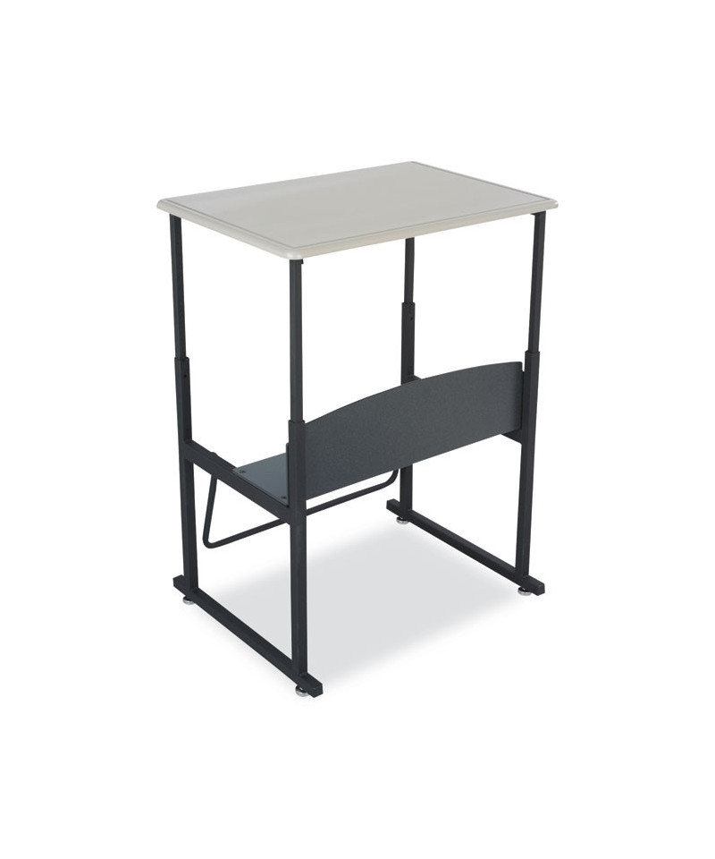 This height-adjustable desk stands 26" to 42" high, and is designed for children grades 3-12. With a fire- and impact-resistant laminated desktop and durable steel frame, these desks provide comfort and convenience for every user. The standing desk offers natural movement via the Patented Swinging Pendulum™ Footrest Bar. Plus offers optimal shelf storage for school supplies and books.