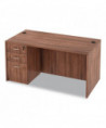 Durable, commercial grade laminate work surface and side panels are water, scratch, and stain resistant. The charcoal accent line under the work surface adds style and a distinctive touch. A protective edge banding helps to prevent damage from bumps. Two grommets for cable and wire management. Full-length modesty panel for added privacy.
