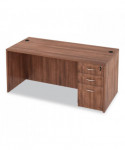 Durable, commercial grade laminate work surface and side panels are water, scratch, and stain resistant. The charcoal accent line under the work surface adds style and a distinctive touch. A protective edge banding helps to prevent damage from bumps. Two grommets for cable and wire management. Full-length modesty panel for added privacy.
