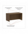 Durable, commercial grade laminate work surface and side panels are water, scratch, and stain resistant. The charcoal accent line under the work surface adds style and a distinctive touch. A protective edge banding helps to prevent damage from bumps. Two grommets for cable and wire management to tuck away your computer and device cords. Full-length modesty panel for added privacy.