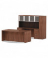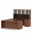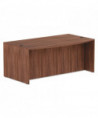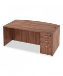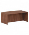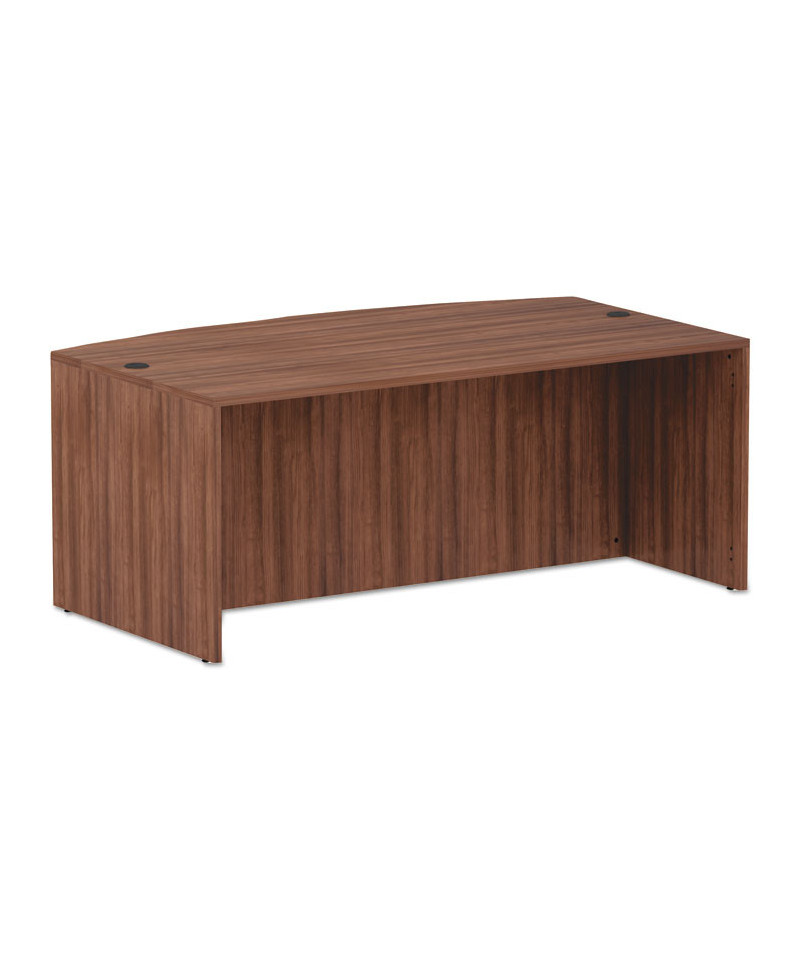 Commercial grade laminate work surface and side panels are water-, scratch- and stain-resistant. Charcoal accent line under worksurface adds a distinctive touch. Arched front with up to 18'' of conference overhang. Protective edge banding helps prevent damage from bumps. Two grommets for cable and wire management. Full-length modesty panel for privacy.