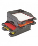 Bring order to your office and collect all important files and documents in one place, or simply keep paper supplies within reach! Deflecto's Docutray Multi-Directional Stacking Tray holds letter, legal and A4 size documents. The interlocking design allows trays to self-stack in any direction so you can have more control over how you want your papers and files to be organized. The curved entry lifts paper for easy access and eliminates bent corners on your documents. Stackable trays allow you to maximize desk space and keep your frequently-used files and documents within reach. Classic black color and simple lines will match any office or workspace decor. Great for use in home or traditional offices, storage spaces for office supplies, print and copy areas, and more! Two trays per set.