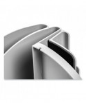 Space-saver has two side load letter-size trays under a file sorter. Rubber feet. 100% recyclable.
