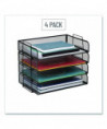 Stackable Paper Desk Tray Organizer, Letter Size, 9.75 x 14 x 3.25, Black, 4/Pack