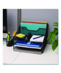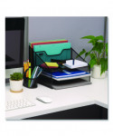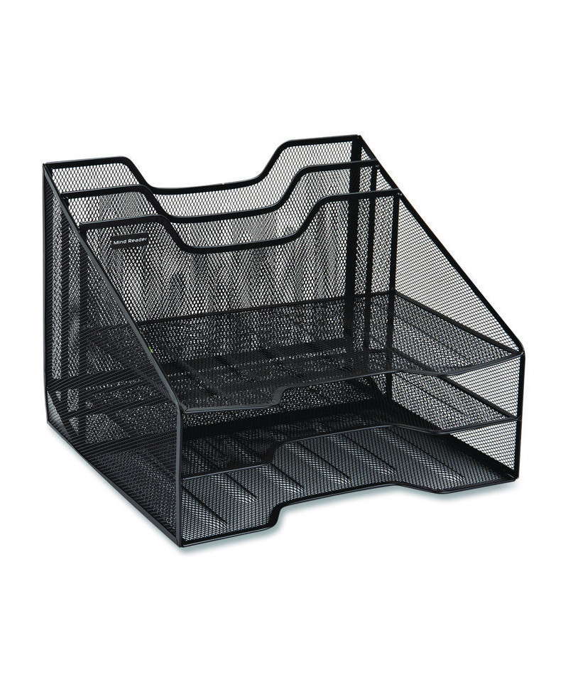 Simplify your life and ramp up your productivity with this efficient and versatile 2-tier, 5-compartment desktop and countertop organizer. Ready to use straight out of the box, it provides an immediate solution to your paper clutter, offering a home for your vital documents, mail and other miscellaneous papers. It's perfectly sized to accommodate all your letter- and A4-sized papers and folders, enabling you to consolidate your essential items in one central location for easy access and space optimization. Flexibility is at the heart of its design: dedicate the top tray to storing your pens, notepads or even electronic devices. Its lightweight nature allows for easy transport from your home office to your kitchen or any other room. This metal mesh organizer is an unobtrusive addition to your workspace. It makes an excellent gift for students embarking on their academic journey, organization enthusiasts or those looking to set up their home office. Coordinates with other Network Collection items to achieve a cohesive look in your workspace.