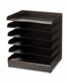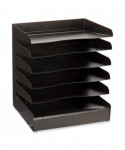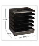 A six-shelf desk organizer built with a sturdy steel construction. The steel desk tray offers slanted shelves with finger cutouts and a fingerprint resistant surface. The steel desk tray organizer includes rubber feet to protect workspace surfaces.