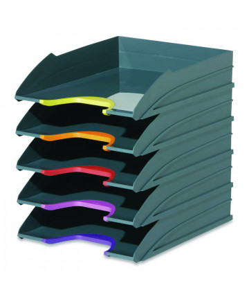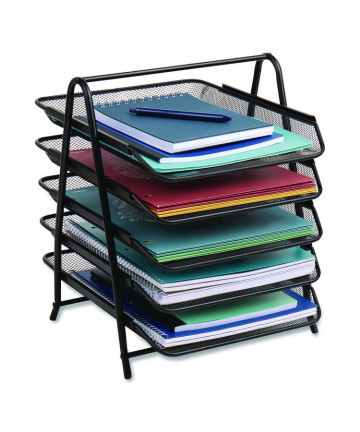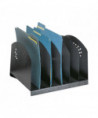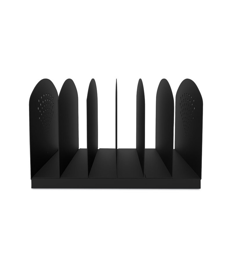 Upright, solid-steel Vertical-Rack Desktop Sorter simplifies storing ongoing-project documents and frequently referenced files at your workstation. With front-facing compartment access to everything, all at a uniform height, it couldn't be easier to grab a folder or document while you sit at your computer. Sturdy, 17-gauge steel construction helps ensure durable performance, and tastefully decorative end panels add an element of sophistication to any office space. Folded-steel base with rubber feet keeps the sorter standing tall while protecting your worksurface.