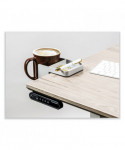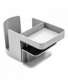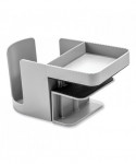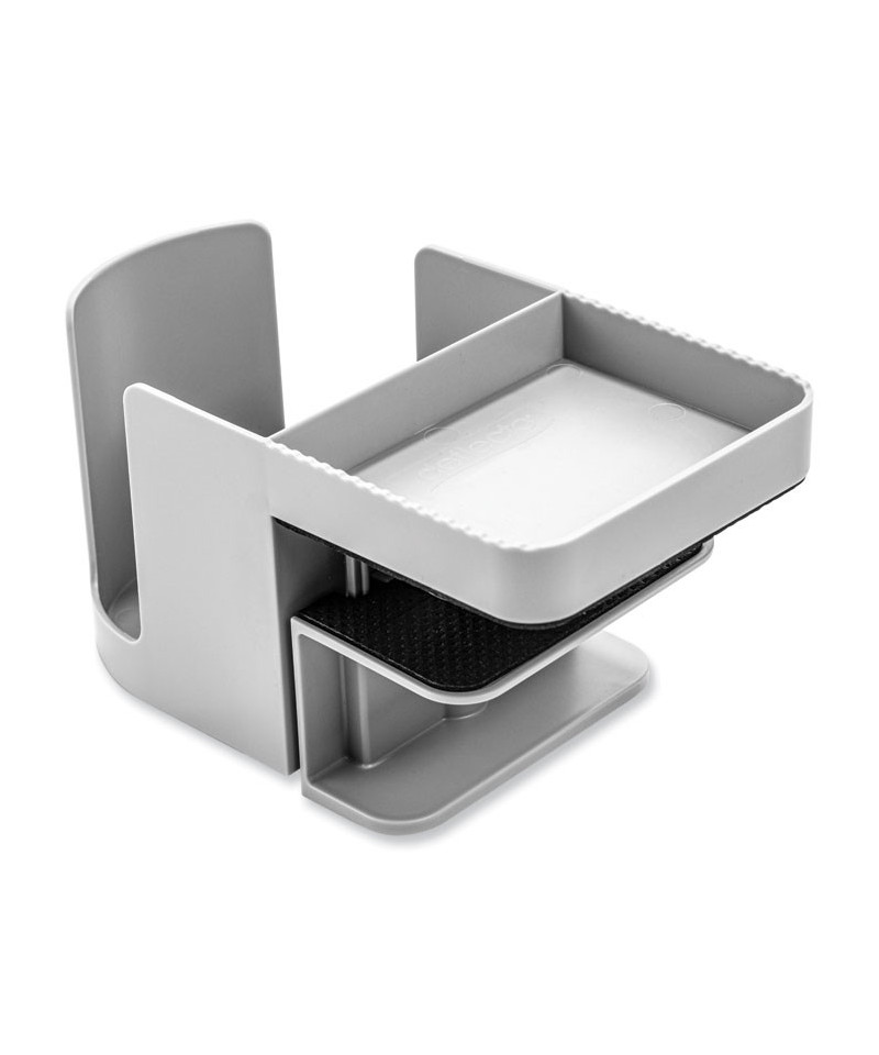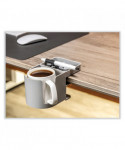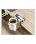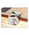 Spilling a drink at your desk can do major damage to paperwork, electronics, and your good mood. Now you can keep your coffee cup or water bottle safely out of the way with deflecto's cup organizer. This versatile, durable accessory clamps onto the edge of your desk or workstation and holds hot and cold beverages securely in place throughout the day. The organizer also includes a supply tray to hold paper clips and other small items.