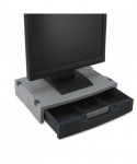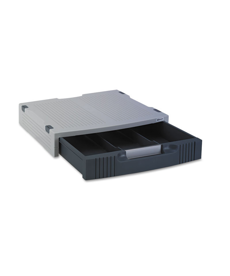 Elevate your screen or printer with this Innovera stand. Its 3-inch height promotes better posture and viewing, while its pull-out drawer, complete with adjustable dividers, provides convenient storage for accessories. Non-skid rubber feet keep it firmly in place, and the stackable design lets you customize desk setups. This compact and functional stand is ideal for enhancing productivity in home or office environments.