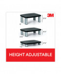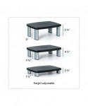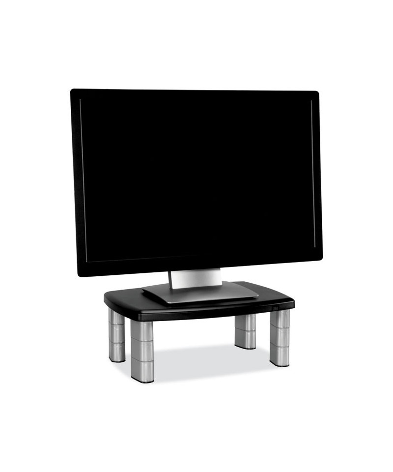 Adjusts to ensure correct ergonomic positioning. Large platform supports monitor, laptop or printer up to 80 lbs. Features 11" of storage space underneath to maximize desk space.