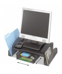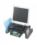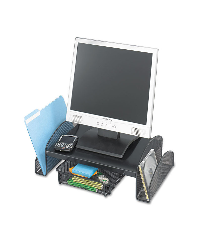 Enhance your workspace ergonomics and reduce neck and eye strain with this durable steel mesh monitor stand, designed to raise your screen 4 inches for a more comfortable and healthier viewing angle. Not only does it promote better posture, but it also provides smart storage solutions with two side compartments for quick access to office essentials and a sliding pullout drawer to neatly store supplies, keeping your desk clutter-free. The sturdy steel mesh construction ensures superior strength and stability, supporting your monitor or laptop with ease while allowing for airflow to prevent overheating. Sleek, modern, and functional, this monitor stand is the perfect addition to any home office, workplace, or study area, combining ergonomic benefits with efficient organization. Upgrade your workspace today for comfort and productivity!