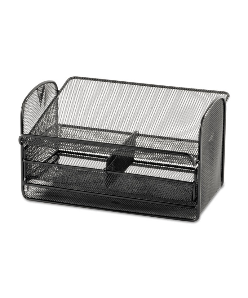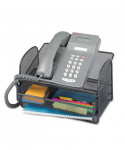 Angled platform holds phone at just the right degree for quick and easy dialing and pickup. Versatile storage drawer has adjustable, removable divider. Additional storage underneath stand can be used for phone books, notebooks, files, binders or papers. Steel mesh design with durable, black powder coat finish.