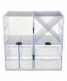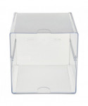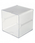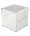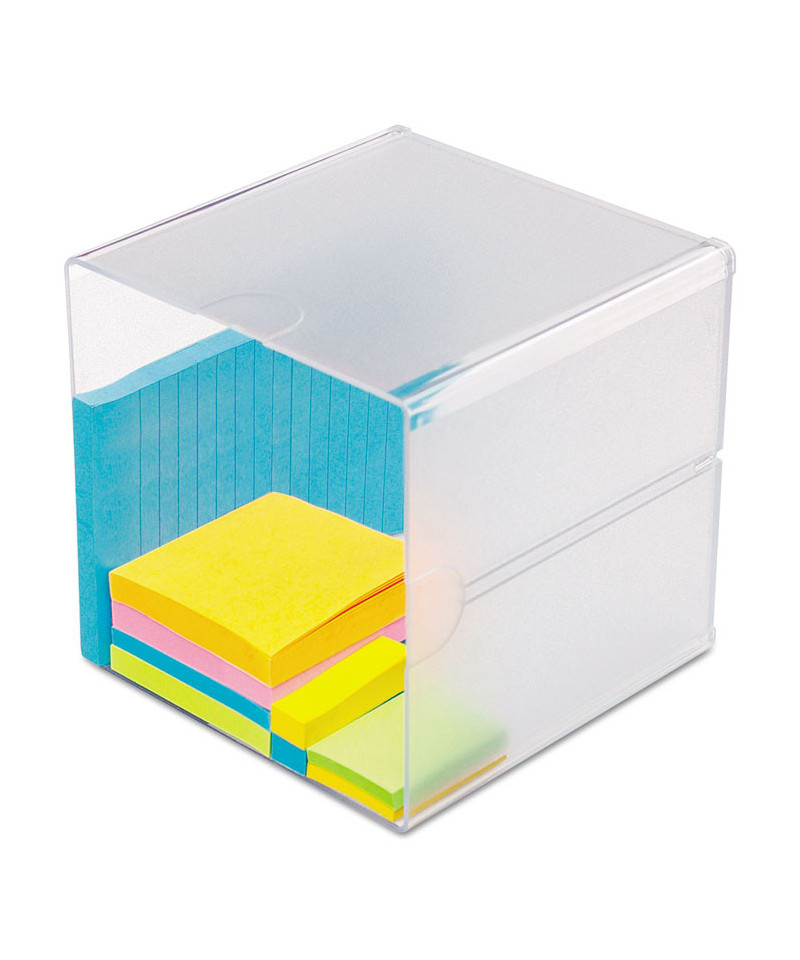 Transparent, stackable cube organizer keeps your workspace clutter-free and supplies close at hand. Ideal for storing small supplies. Drawers are clear so you can easily see what's inside, and removable so you can get what you need quickly. Modular organizers stack together with linking clips, letting you create a custom storage system. One linking clip included per cube organizer. Sturdy plastic construction.