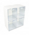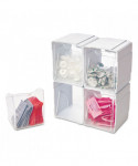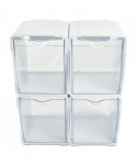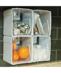 The ultimate in versatility. Create the ideal storage solution for the space you have available. Interlocking dovetail design stacks and connects vertically and horizontally. Add on as many as you need. Clear bins provide visibility and tilt out for easy cleaning and refilling. Can be used on counter top, mounted to wall directly, hung on mounting bar (sold separately), or underneath cabinets.