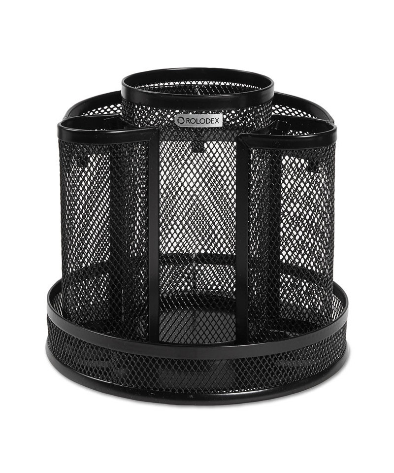 Keep pens, pencils, paperclips, rubber bands, and more sorted and within reach with the Rolodex Mesh Collection Spinning Desk Sorter. Ideal for home and business workspaces, the desk sorter features eight compartments and a rotating base for organization and easy use.