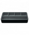 Clean, modern space-shaper that organizes small desk accessories. High-gloss, rolled edges provide bold contrast and sleek, modern design. Five separate compartments divide pens, pencils, paper clips and more. Plastic-infused durability.