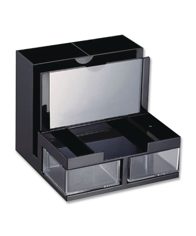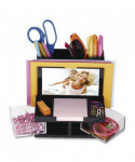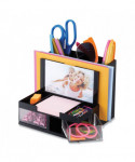 Keep frequently used supplies easily accessible with this desk organizer. The convenient photo slot lets you add a picture of your family to your desk. Seven compartments let you sort everything from pens to paper clips. Two swing-out drawers provide perfect storage for thumbtacks or even loose change.