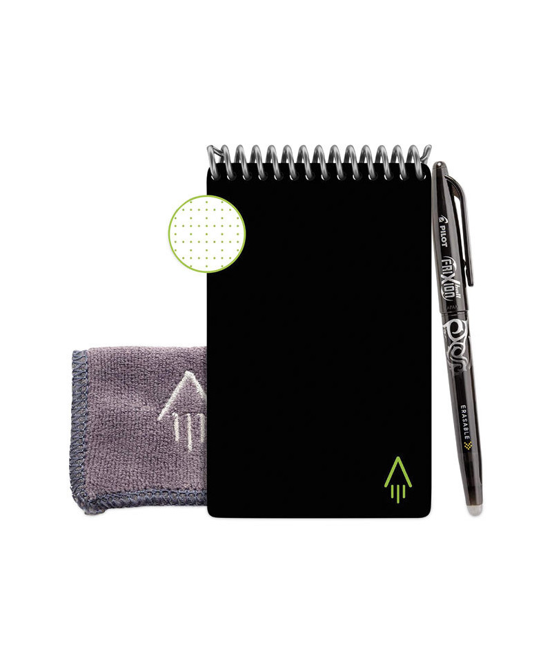 The Rocketbook Mini reusable notepad provides a classic pen and paper experience, yet is built for the digital age. Although it feels like a traditional notepad, Mini is endlessly reusable and connected to all of your favorite cloud services. When you write using any pen from the Pilot FriXion line, your writing sticks to Rocketbook pages like to regular paper. But add a drop of water, and the notepad erases like magic. Mini Smart has pages made with synthetic materials that provide an extremely smooth writing experience.