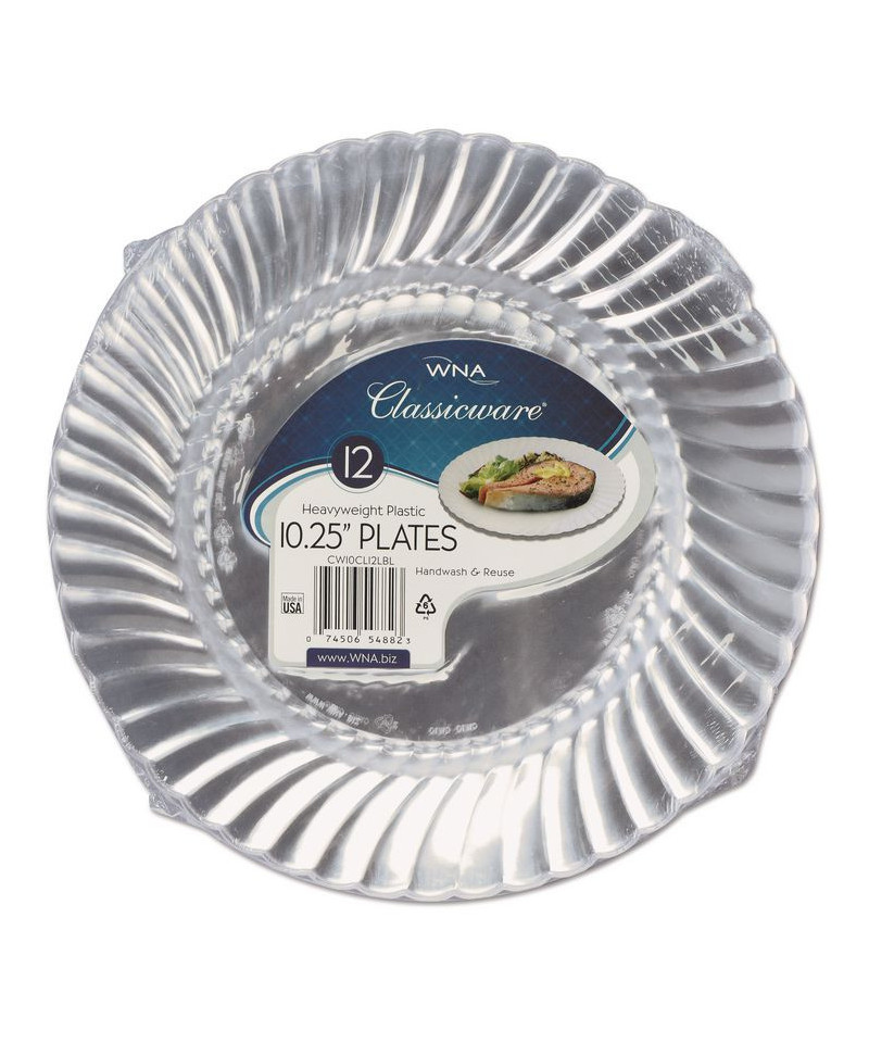 Classicware Plastic Dinnerware Plates, 10.25" dia, Clear, 12/Pack