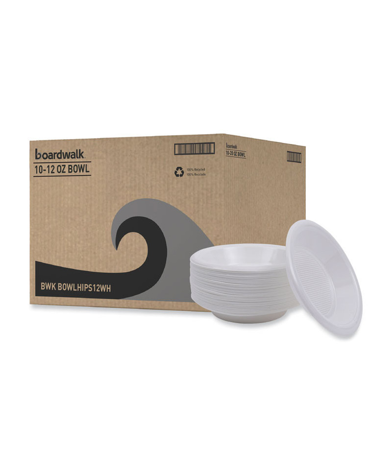 Hi-Impact Plastic Dinnerware, Bowl, 10 oz to 12 oz, White, 1,000/Carton