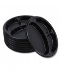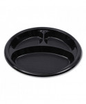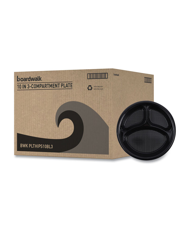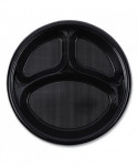 Hi-Impact Plastic Dinnerware, 3-Compartment Plate, 10" dia, Black, 125/Sleeve, 4 Sleeves/Carton