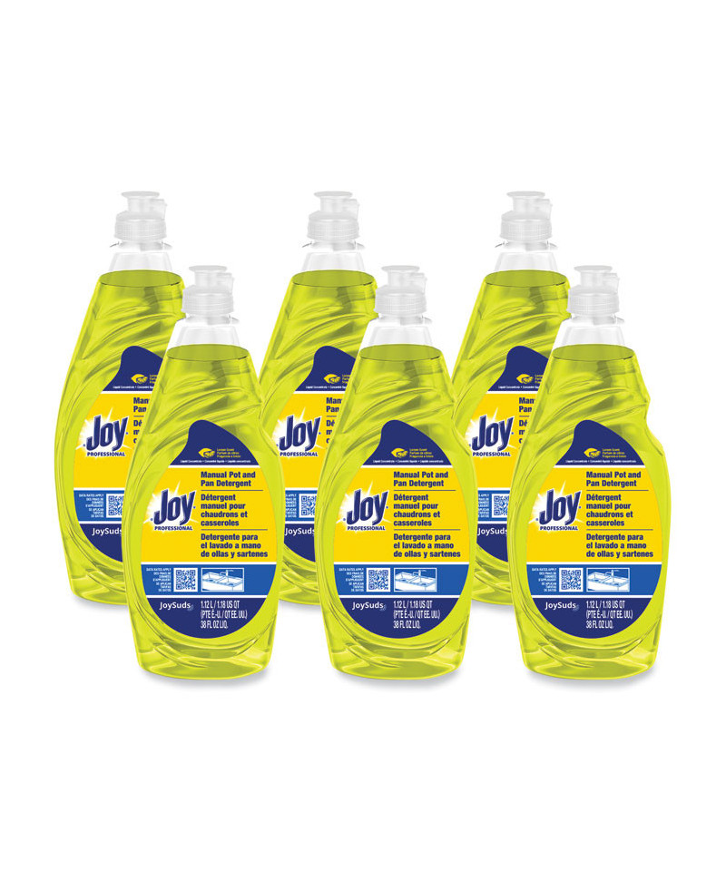 Joy® Professional Manual Pot & Pan Dish Detergent cleans a wide variety of soils and leave your dishes with a fresh lemon scent. Forms surfactant micelles that stays suspended in wash water to provide micro-reservoirs of reserve cleaning power. A rich layer of suds provides high mileage performance for your dishes. Commercial grade detergent. Concentrated: Uses one to three fluid ounces of detergent per ten-gallon sink.