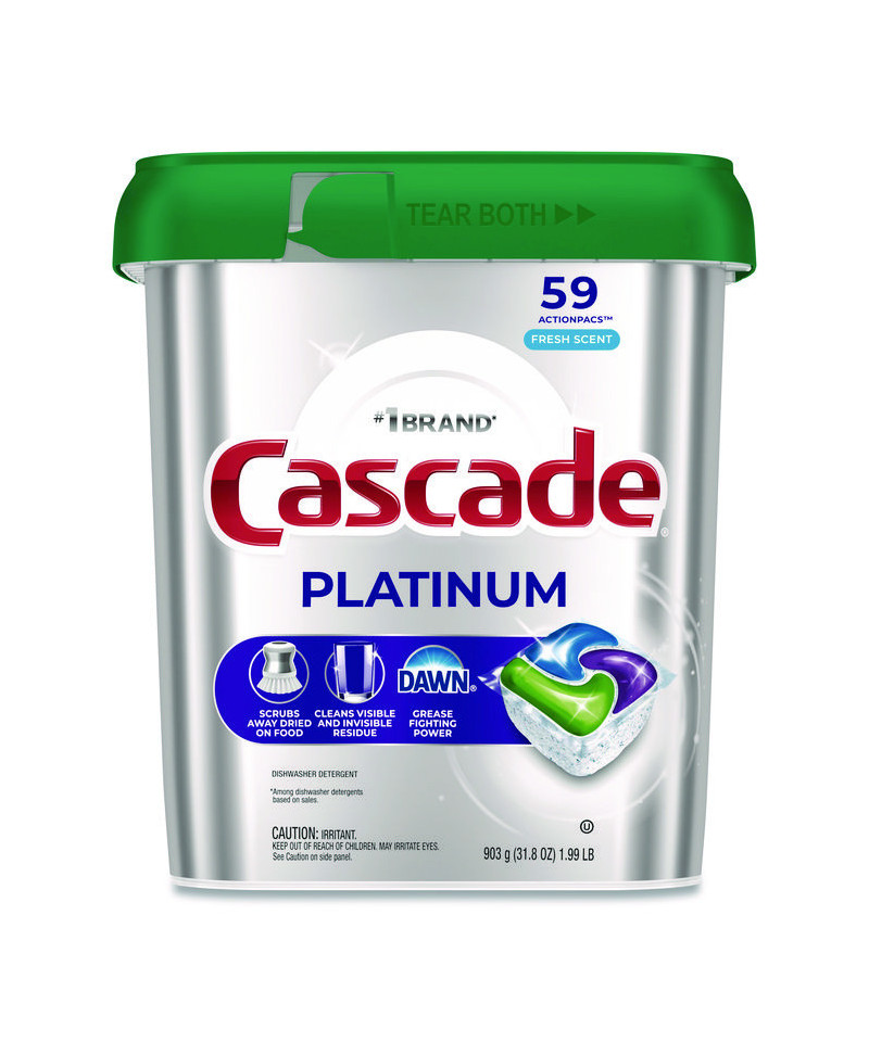 Cascade ActionPacs dishwasher detergent powers away greasy residue for sparkling dishes. That's because every ActionPac combines the scrubbing power of Cascade and the grease-fighting power of Dawn dishwashing liquid to leave your dishes virtually spotless. Cascade ActionPacs are conveniently premeasured with no finicky wrapping-simply load your dishwasher, pop in an ActionPac, and go! Cascade ActionPacs are phosphate free. Plus, they dissolve quickly to unleash cleaning power early in the dishwasher cycle. For best results, use Cascade ActionPacs with Cascade Power Dry Rinse Aid for powerful drying and Cascade Dishwasher Cleaner to keep your dishwasher machine sparkling. Save up to 15 gallons of water per dishwasher load when you skip the pre-wash and run your dishwasher with Cascade ActionPacs.