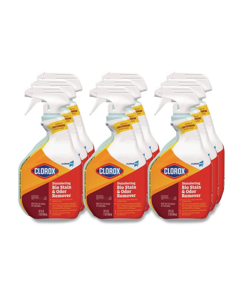 CloroxPro Disinfecting Bio Stain and Odor Remover, Fragranced, 32 oz Spray Bottle, 9/Carton