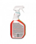 Specially formulated cleaner cleans, disinfects and deodorizes in one step.