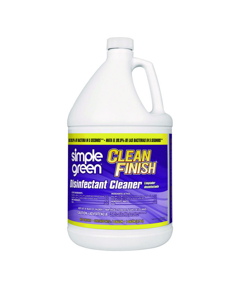 Cleans, disinfects and deodorizes when used according to disinfection directions. Use on hard non-porous surfaces. Kills 99.9% of bacteria in five seconds (Staphylococcus aureus, Klebsiella pneumoniae). Use in homes, schools, veterinary clinics, gyms, motels, kennels, daycare centers and more. Kills cold (Rhinovirus) and flu. Simple Green® Clean Finish has demonstrated effectiveness against viruses similar to SARS-CoV-2 on hard, non-porous surfaces when used as directed. Therefore, Simple Green Clean Finish can be used against SARS-CoV-2 when used in accordance with the directions for use against Poliovirus Type 1 on hard, non-porous surfaces. Refer to the CDC for additional information.