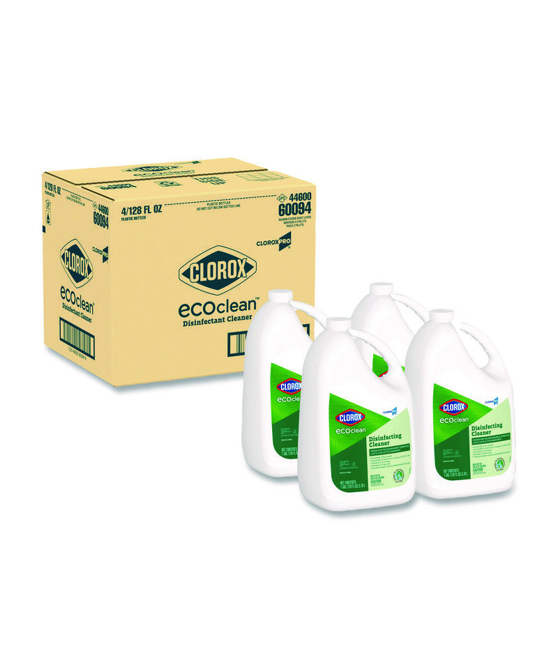 Clean with confidence—thanks to Clorox® CloroxPro® EcoClean Disinfecting Cleaner, you get the cleaning power of Clorox® you expect with a Design for the Environment certified lactic acid active ingredient. This Clorox® disinfecting cleaner kills 99.9% of flu viruses (Human Coronavirus, Influenza A Virus, Respiratory Syncytial Virus) and disinfects and sanitizes when used as directed. It kills SARS-CoV-2, the virus that causes COVID-19, in 30 seconds on hard, non-porous surfaces when used as directed and is formulated without bleach, alcohol, phosphates, quats and dyes, leaving a clean, fresh scent. Clorox® CloroxPro® EcoClean Disinfecting Cleaner is great for everyday use, no gloves or mixing required. The product is suitable for use in commercial spaces including airports, colleges, dorms, fitness centers, hotels, long-term care facilities, offices, restrooms and waiting rooms.