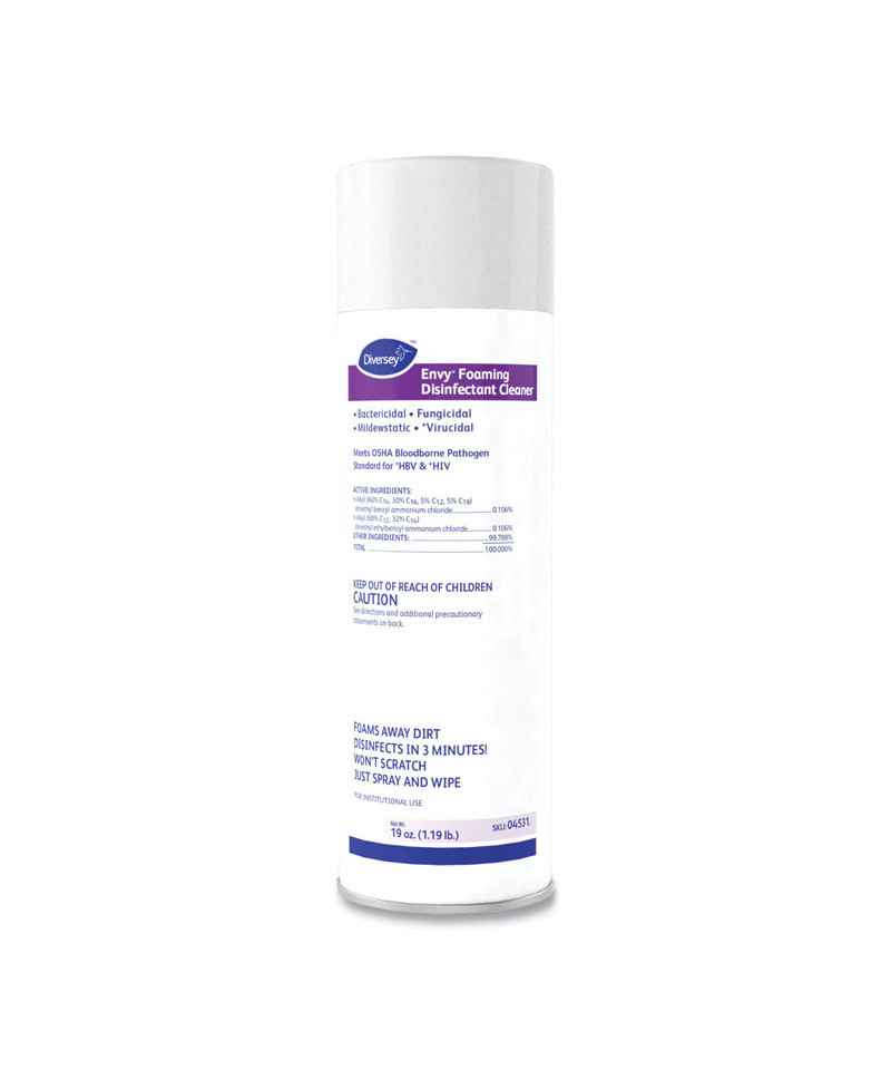 Clean and disinfect with a simple spray and wipe. The foaming action penetrates and dissolves common soils and stains. Non-abrasive formula is safe to use on hard, non-porous surfaces. Highly effective against a wide variety of bacteria, viruses and fungi.