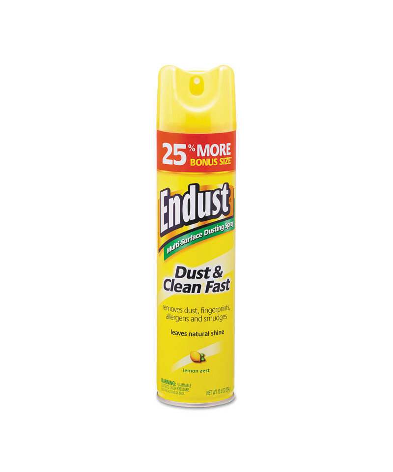 Endust Multi-Surface Dusting & Cleaning Spray picks up and holds dust, while also eliminating allergens, fingerprints, smears and smudges. The fast-acting and silicone-free formula works on just about any surface, leaving behind a natural shine and a refreshing lemon zest scent. Easy to use aerosol does not leave any residue or buildup.