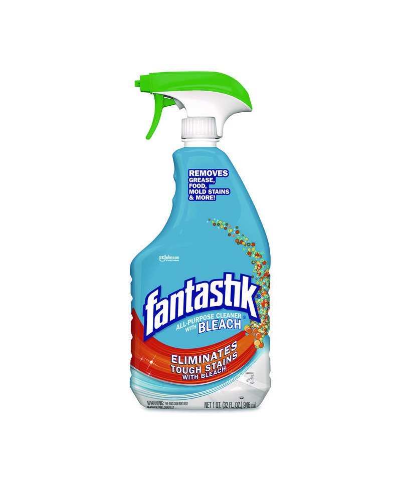 Disinfect hard surfaces in the home or business premises easily with this spray-on Fantastik all-purpose cleaner with bleach. Its powerful bleach formula effectively removes stains, grease, mold, and other dirt from countertops, sinks, tiles, appliance exteriors, stainless steel fixtures, and other hard surfaces. This multipurpose cleaner has a fresh, clean scent that helps take away odors in kitchens and bathrooms. This product works great on countertops, stoves, sinks, toilets, tile, tubs, showers, lawn furniture, faucets, microwaves, refrigerators and more.
