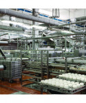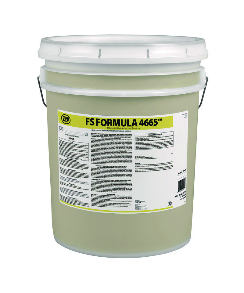 FS Formula 4665 is a highly concentrated liquid chlorinated product suitable for various sanitation needs, including egg sanitization, fruit and vegetable washing, and cleaning food processing equipment and other hard surfaces. With a sodium hypochlorite content of 12.5%, it offers cost-effectiveness, requiring as little as one fluid ounce in 10 gallons of water for sanitizing purposes. Additionally, it effectively eliminates odors and is non-foaming. Ideal for use in canneries, seafood processing plants, wineries, vegetable processing plants, institutional kitchens, breweries, bakeries, bottling plants, dining establishments, dairy farms, egg processing plants, meat and poultry processing plants, nursing homes, hospitals, and sanitary services. Its color-coded labeling, designated as "sanitizer red," facilitates easy integration with other color-coded Zep food system products, while its foam-free nature makes it ideal for clean-in-place (CIP) applications.