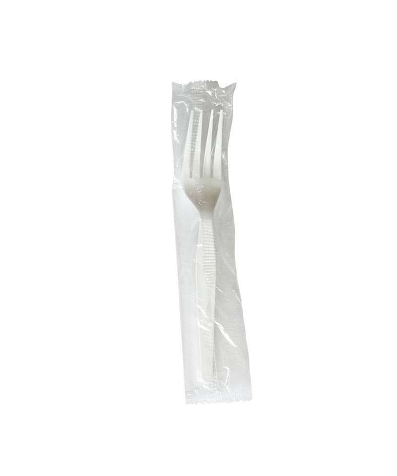 Heavyweight Wrapped Polystyrene Cutlery, Fork, Plastic, White, 1,000/Carton