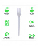 Plantware Compostable Cutlery, Fork, Plastic, White, 1,000/Carton