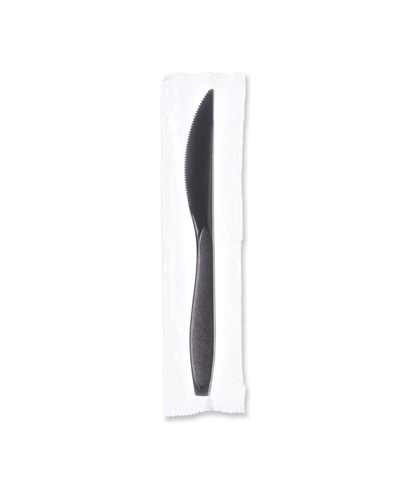 Reliance Classic Plastic Cutlery, Individually Wrapped, Medium Heavyweight Knife, Black, 1,000/Carton