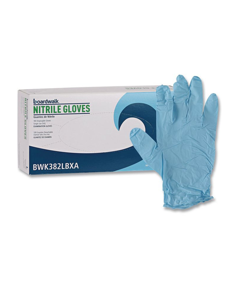 Disposable Examination Nitrile Gloves, Powder-Free, Large, 5 mil Thick, 9.5" Long, Blue, 100/Box