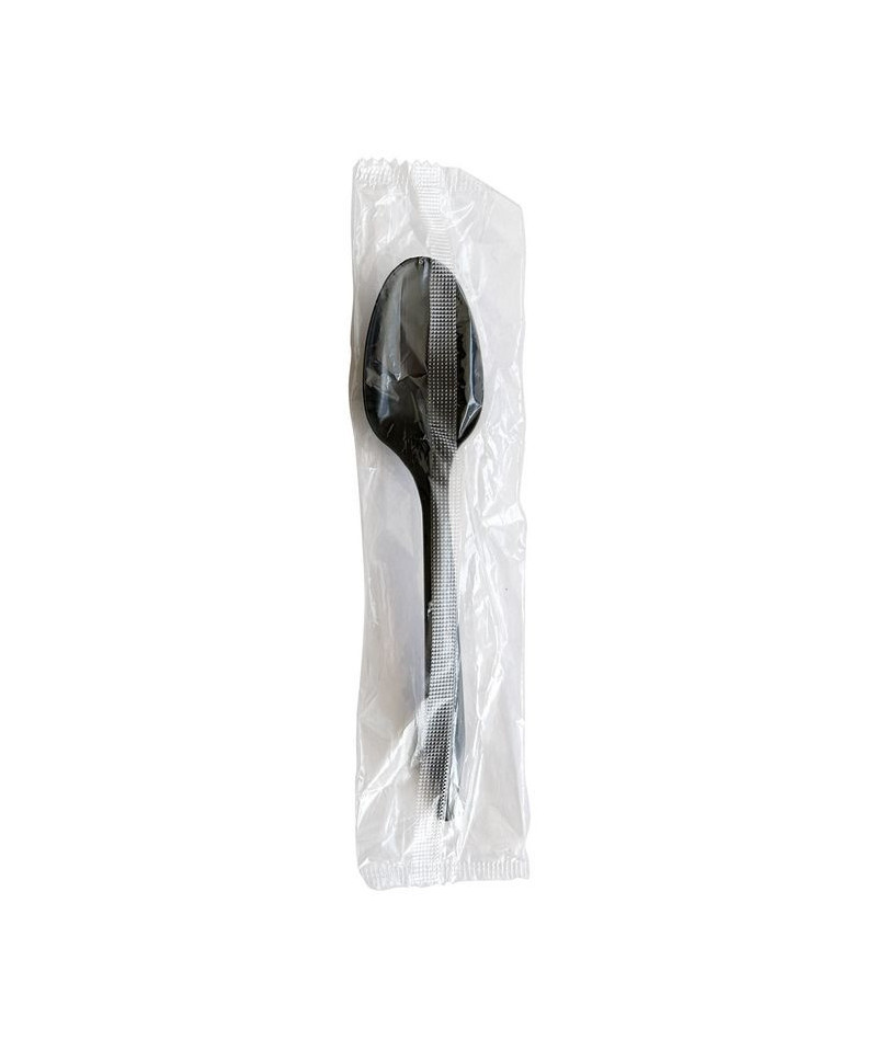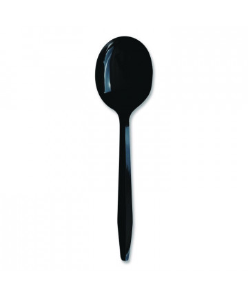 Mediumweight Polypropylene Cutlery, Individually Wrapped, Spoon, Plastic, Black, 1,000/Carton