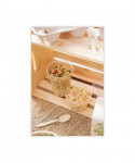 Manufactured from a strong, heavy weight material-blend that includes about 35% renewable starch. 50% of the base material comes from corn not originally intended for human consumption (not genetically modified). Can handle temperatures up to 200°F which makes it perfect for higher heat applications. Strong enough for hearty meals.