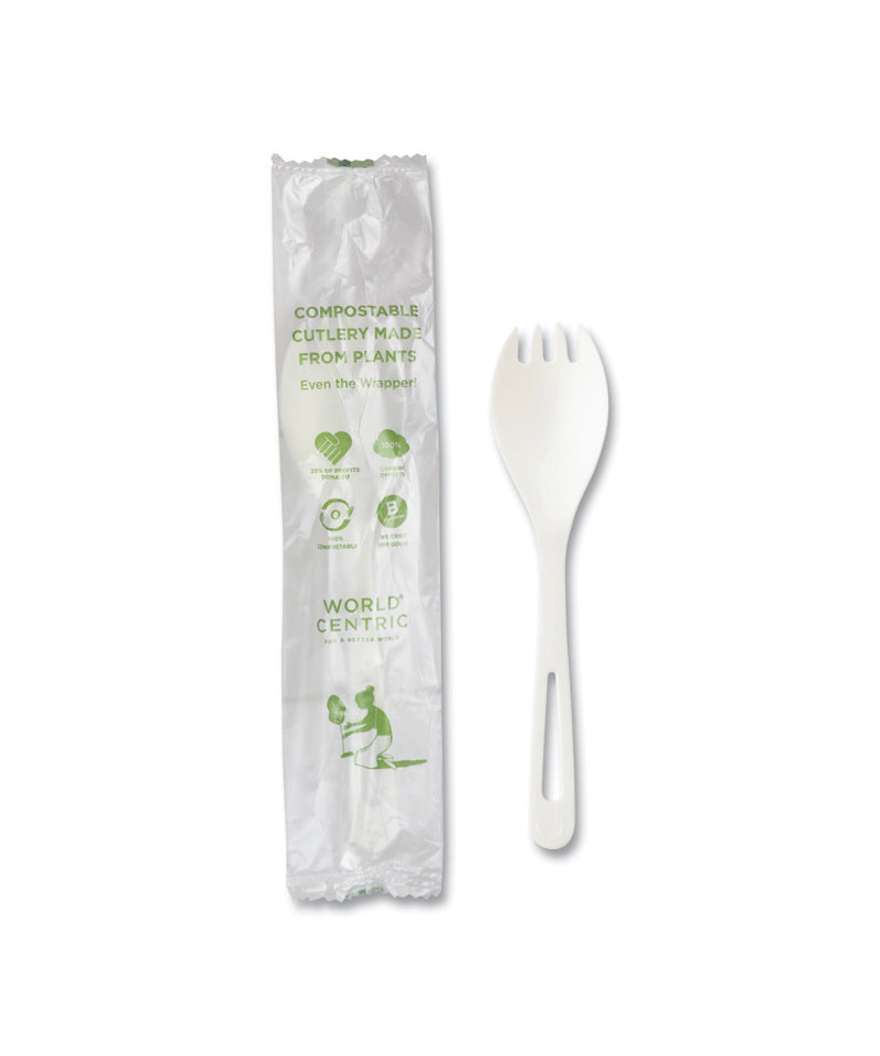 TPLA Wrapped Cutlery, Spork, Plastic, Light Beige, 750/Carton