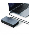 Rapid, uninterrupted file transfers are expected as this docking station utilizes 3.2 Gen 2 technologies and comes equipped with a gigabit Ethernet for stable, wireless connection. Our dock also has SD and microSD card reader slots to read and transfer files directly. An audio jack ensures you are able to connect your speakers and headsets for a simply dynamic workspace.
