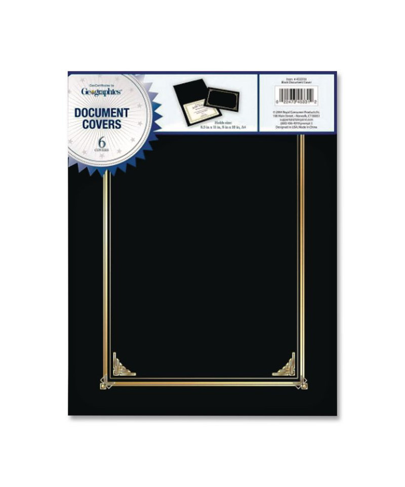 Certificate/Document Cover, 12.5 x 9.75, Black, 6/Pack