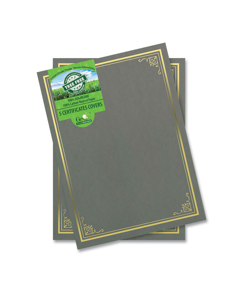 Certificate/Document Cover, 9.75" x 12.5", Gray With Gold Foil, 5/Pack