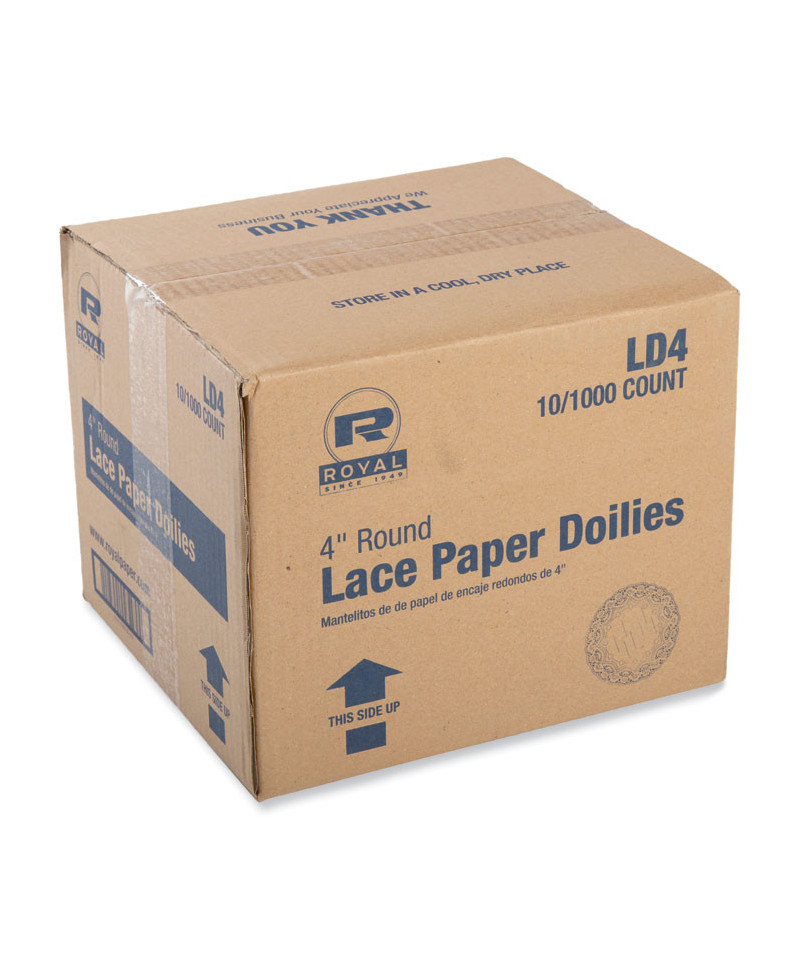 Add to cart Cambridge Lace Doilies, Round, 4", White, 10,000/Carton $766.75 Add an element of elegance to food and beverage presentation. May be used for displaying pastries and desserts in bakeries and restaurants or as a...